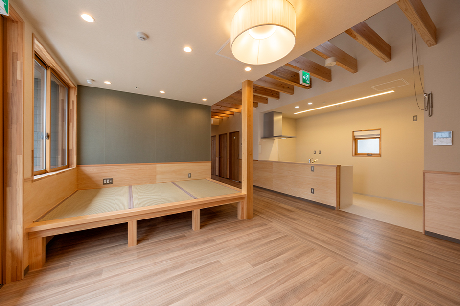 香川県仲多度郡多度津町用途 グループホーム竣工年月日 2025.4建築面積 191.63m²延床面積 200.70m² 階数 地上1階構造 木造構造 特定非営利活動法人 ひざし会施工 富士建設株式会社写真 三崎利博